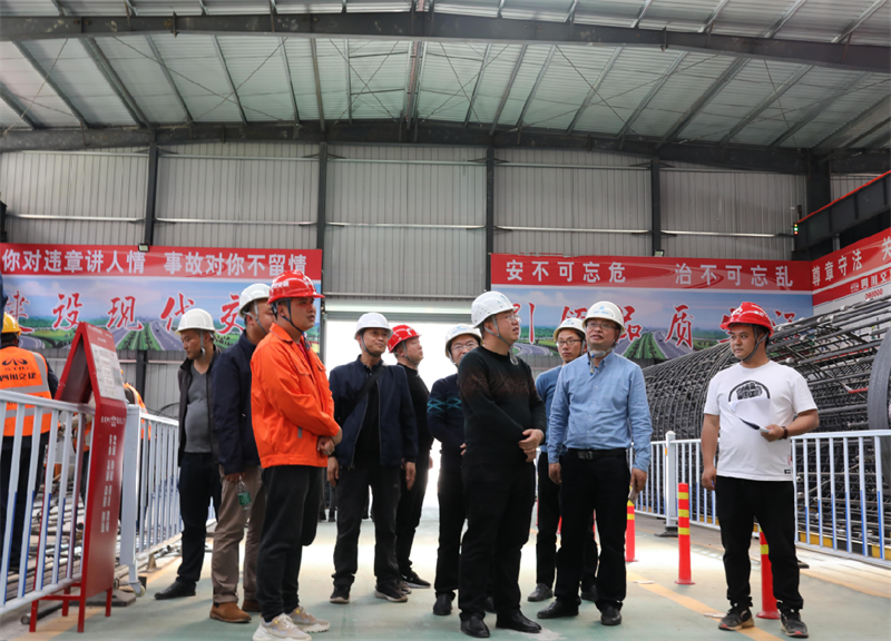 羅倫全一行通過(guò)聽(tīng)取介紹、實(shí)地查看、座談交流的方式,重點(diǎn)就項(xiàng)目部駐地規(guī)范化、精細(xì)化建設(shè),鋼筋加工場(chǎng)、拌合站、隧道洞口等主要施工場(chǎng)地的場(chǎng)地規(guī)劃、安全設(shè)施布置,鋼筋加工場(chǎng)和拌合站智能化、標(biāo)準(zhǔn)化作業(yè),隧道工程科學(xué)化施工、黨建文化生活、勞務(wù)管理等進(jìn)行全面學(xué)習(xí)交流。