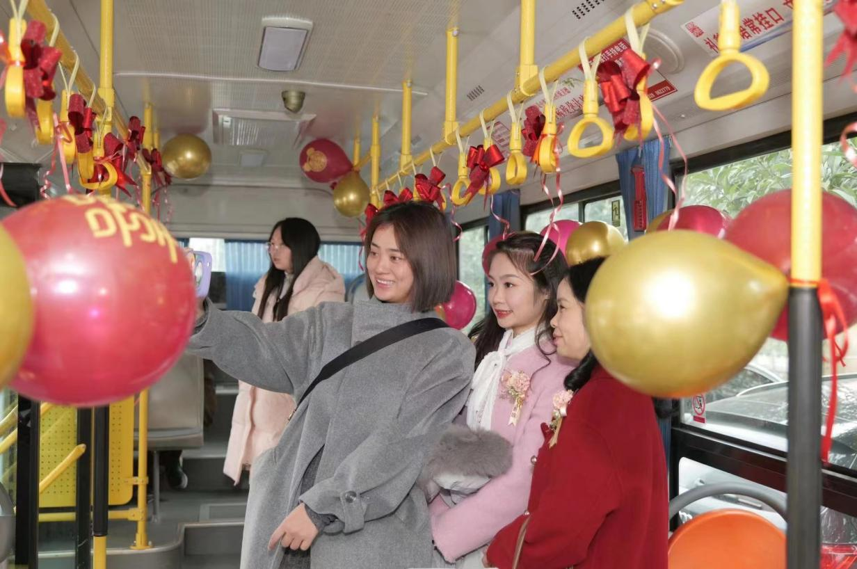 使用這輛“公交婚車”的新人表示:“與傳統(tǒng)迎親的車隊(duì)相比,公交婚車不僅低碳環(huán)保,好看熱鬧,而且租金也相對較低,性價(jià)比直接拉滿,親朋好友都聚集在寬敞的公交車?yán),一路拍照、唱歌,特別有儀式感”。