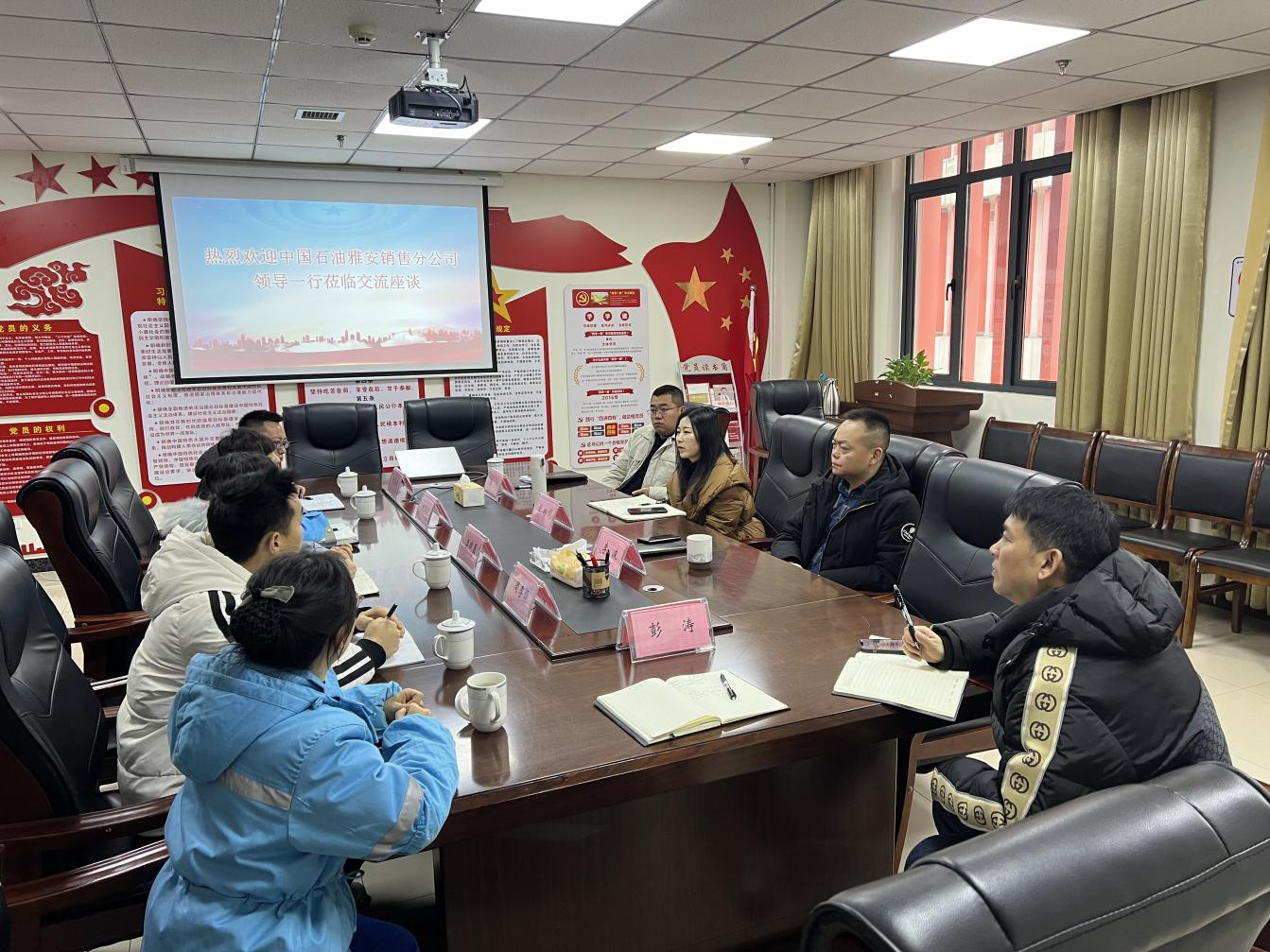 3月6日,中國石油雅安銷售分公司雨城片區(qū)副經(jīng)理劉國毅一行赴交建集團建材公司,就石油貿(mào)易業(yè)務(wù)合作事宜進行交流座談。建材公司董事長李波,總經(jīng)理李巧頔,副總經(jīng)理楊川參加座談。