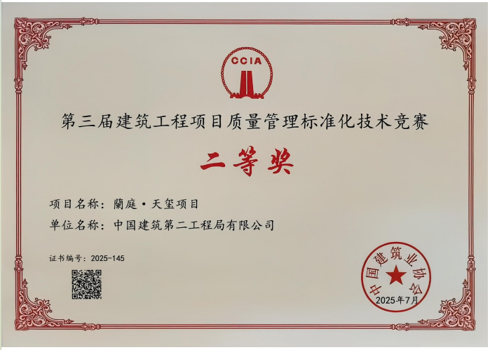 近日,交建開發(fā)公司旗下“蘭庭・天璽”項(xiàng)目在中國(guó)建筑業(yè)協(xié)會(huì)組織的“第三屆建筑工程項(xiàng)目質(zhì)量管理標(biāo)準(zhǔn)化技術(shù)競(jìng)賽”中榮獲二等獎(jiǎng)。此次獲獎(jiǎng),標(biāo)志著“蘭庭・天璽”項(xiàng)目的質(zhì)量管理體系與工程實(shí)體質(zhì)量獲得了行業(yè)權(quán)威認(rèn)可,為項(xiàng)目后續(xù)創(chuàng)建更高層次的品質(zhì)獎(jiǎng)項(xiàng)積累了寶貴經(jīng)驗(yàn)。