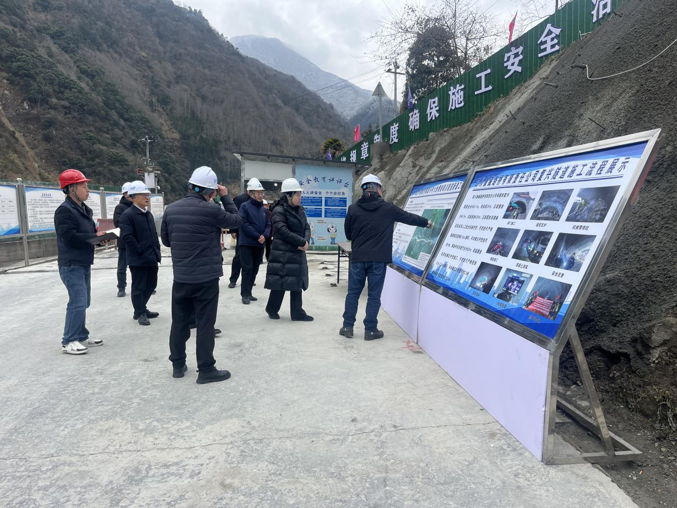 2月12日,市委副書記、市長彭映梅率隊(duì)赴S432寶興縣隴東鎮(zhèn)復(fù)興村火地槽崩塌點(diǎn)隧道新建工程項(xiàng)目開展調(diào)研,實(shí)地督導(dǎo)項(xiàng)目建設(shè)及復(fù)工復(fù)產(chǎn)工作。副市長鄭胡勇,市政府秘書長劉劍飛參加調(diào)研。