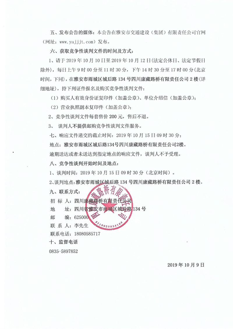 四川康藏路橋有限責(zé)任公司國(guó)道351線磽磧至夾金山路面改造工程波形護(hù)欄采購(gòu)競(jìng)爭(zhēng)性談判結(jié)果公示