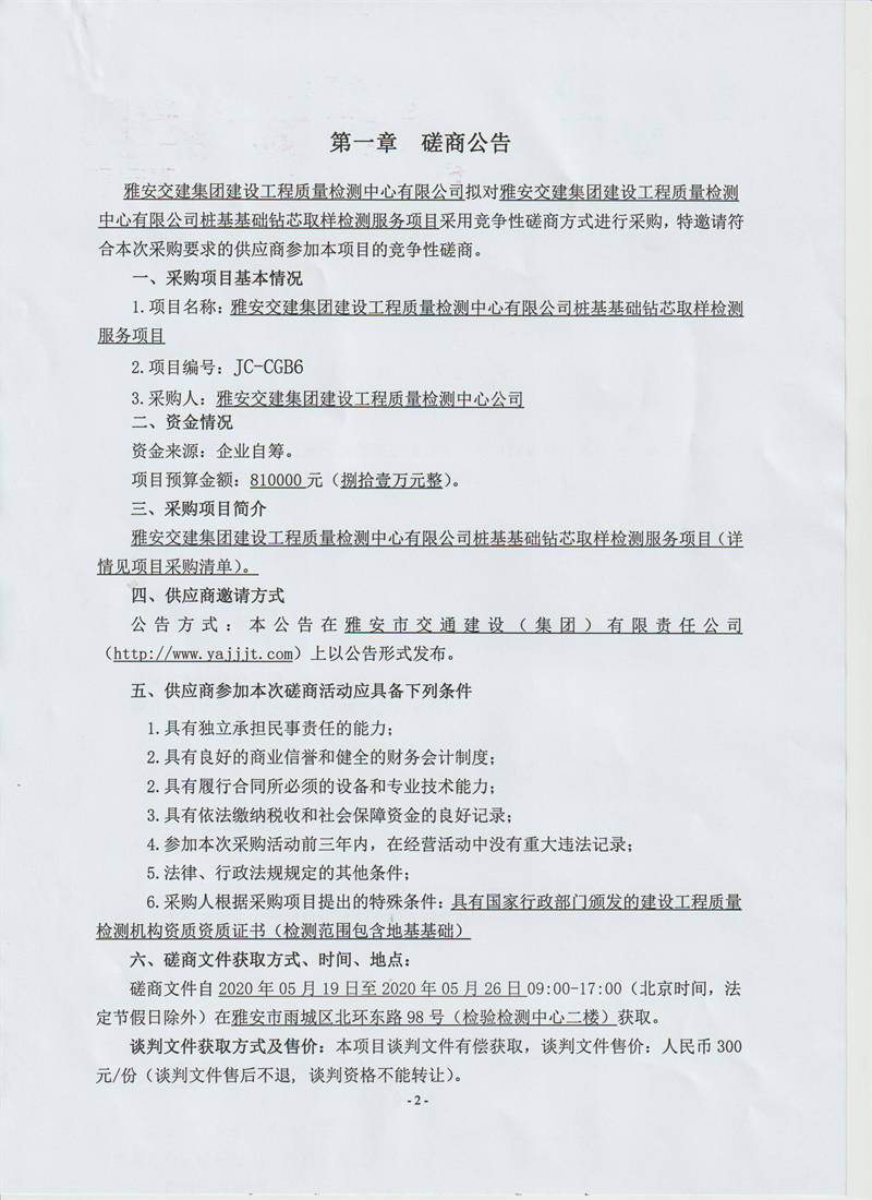 雅安交建集團建設工程質量檢測中心有限公司樁基基礎鉆芯取樣檢測服務項目競爭性磋商公告