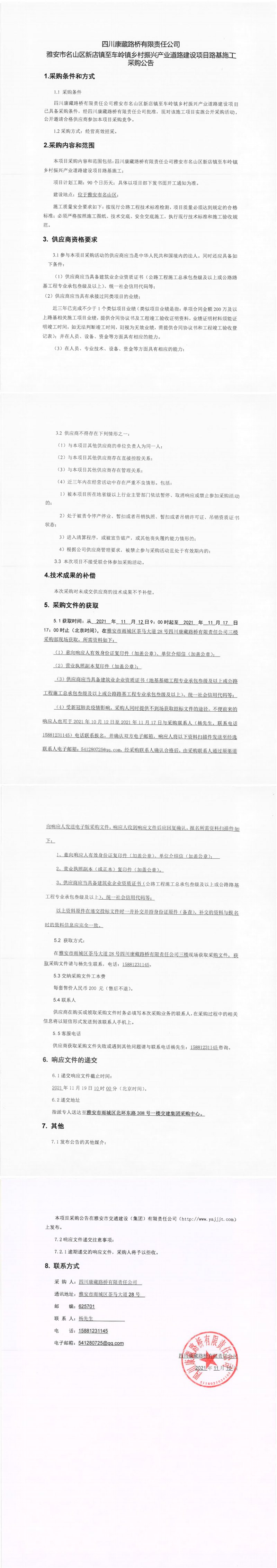 四川康藏路橋有限責(zé)任公司雅安市名山區(qū)新店鎮(zhèn)至車(chē)嶺鎮(zhèn)鄉(xiāng)村振興產(chǎn)業(yè)道路建設(shè)項(xiàng)目路基施工采購(gòu)公告