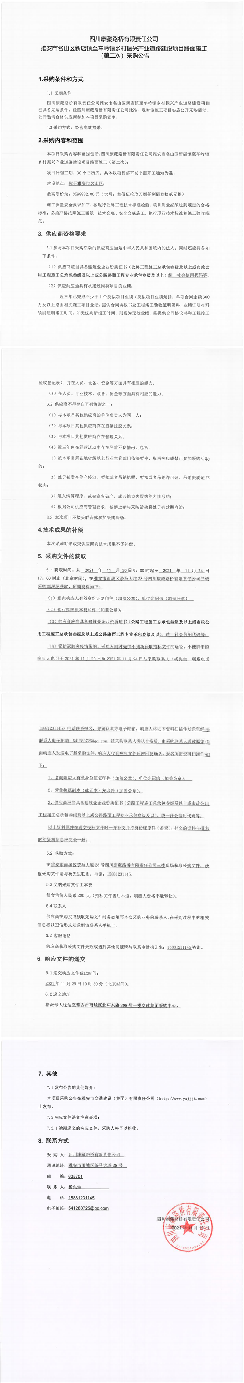 四川康藏路橋有限責(zé)任公司雅安市名山區(qū)新店鎮(zhèn)至車嶺鎮(zhèn)鄉(xiāng)村振興產(chǎn)業(yè)道路建設(shè)項目路面施工(第二次)采購公告