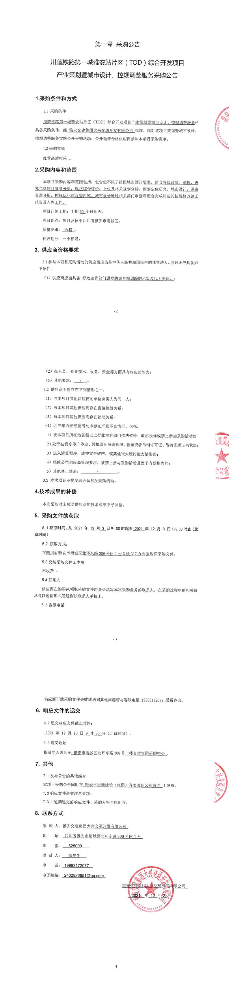 雅安交建集團(tuán)大興交通開發(fā)有限公司川藏鐵路第一城雅安站片區(qū)(TOD)綜合開發(fā)項(xiàng)目產(chǎn)業(yè)策劃暨城市設(shè)計(jì)、控規(guī)調(diào)整服務(wù)采購公告