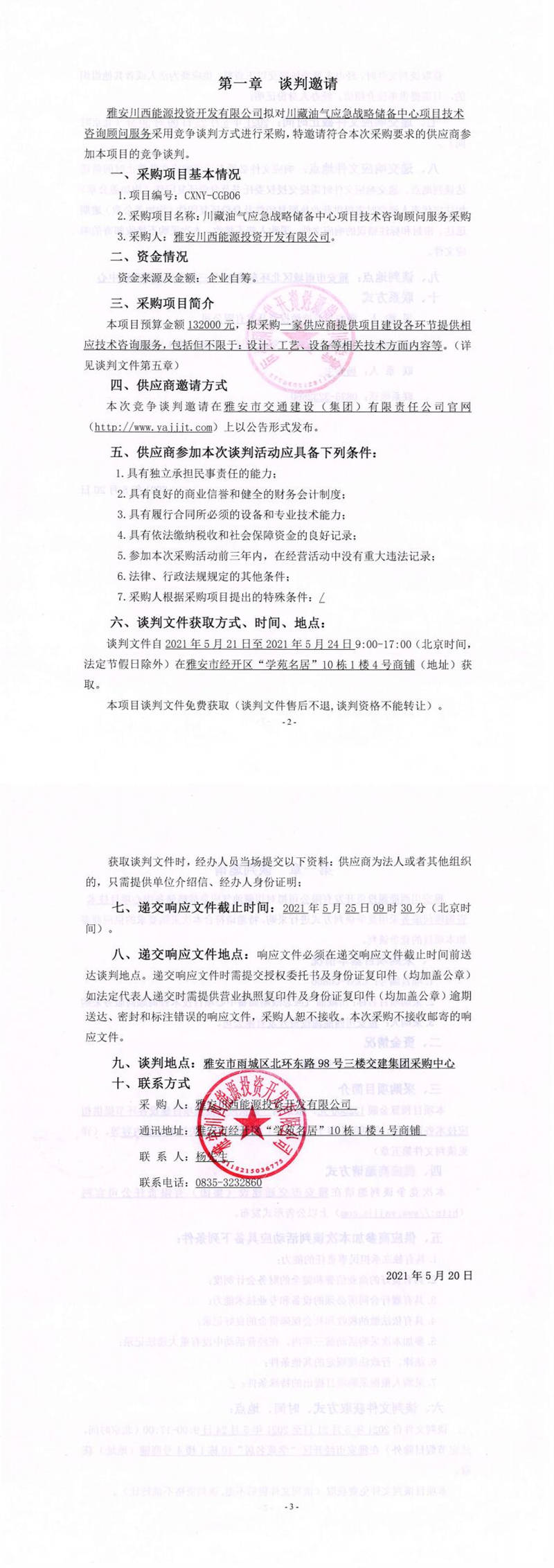 雅安川西能源投資開(kāi)發(fā)有限公司川藏油氣應(yīng)急戰(zhàn)略儲(chǔ)備中心項(xiàng)目技術(shù)咨詢顧問(wèn)服務(wù)采購(gòu)競(jìng)爭(zhēng)談判公告