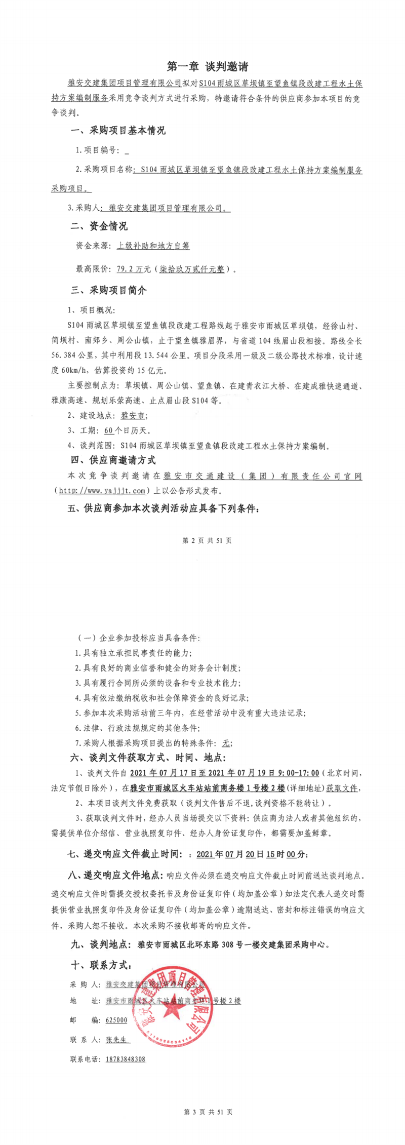雅安交建集團(tuán)項(xiàng)目管理有限公司S104雨城區(qū)草壩鎮(zhèn)至望魚段改建工程水土保持方案編制服務(wù)采購項(xiàng)目競(jìng)爭(zhēng)談判公告