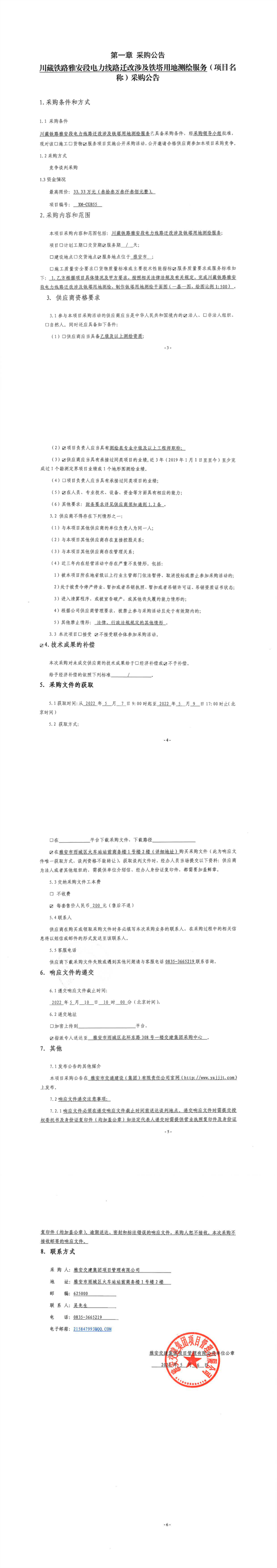 雅安交建集團項目管理有限公司川藏鐵路雅安段電力線路遷改涉及鐵塔用地測繪服務采購公告