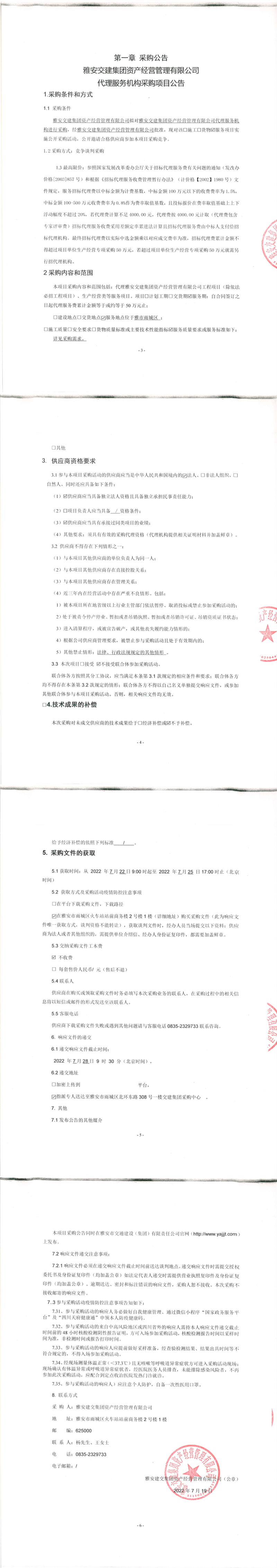 雅安交建集團(tuán)資產(chǎn)經(jīng)營(yíng)管理有限公司代理服務(wù)機(jī)構(gòu)采購(gòu)項(xiàng)目公告