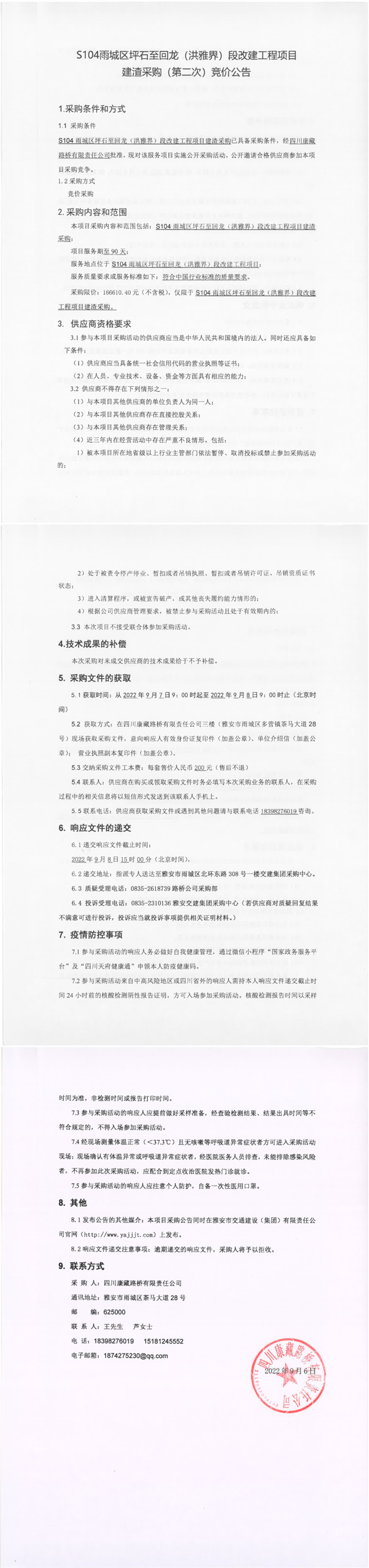 四川康藏路橋有限責任公司S104雨城區(qū)坪石至回龍(洪雅界)段改建工程項目建渣采購(第二次)競價公告