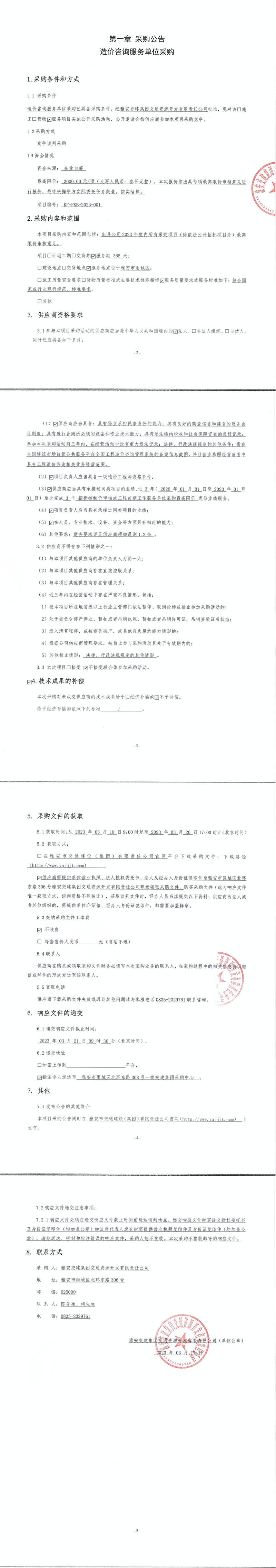 雅安交建集團交通資源開發(fā)有限責任公司造價咨詢服務(wù)單位采購公告