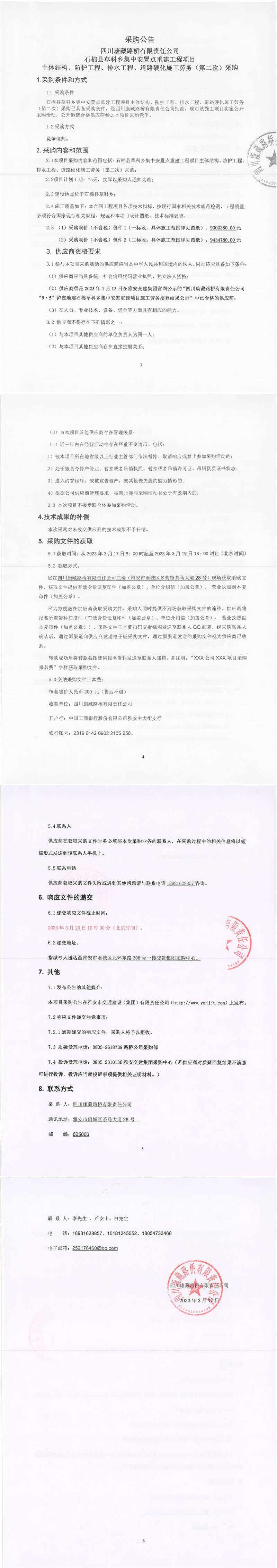 四川康藏路橋有限責任公司石棉草科鄉(xiāng)集中安置點重建工程項目主體結構、防護工程、排水工程、道路硬化施工勞務(第二次)采購公告
