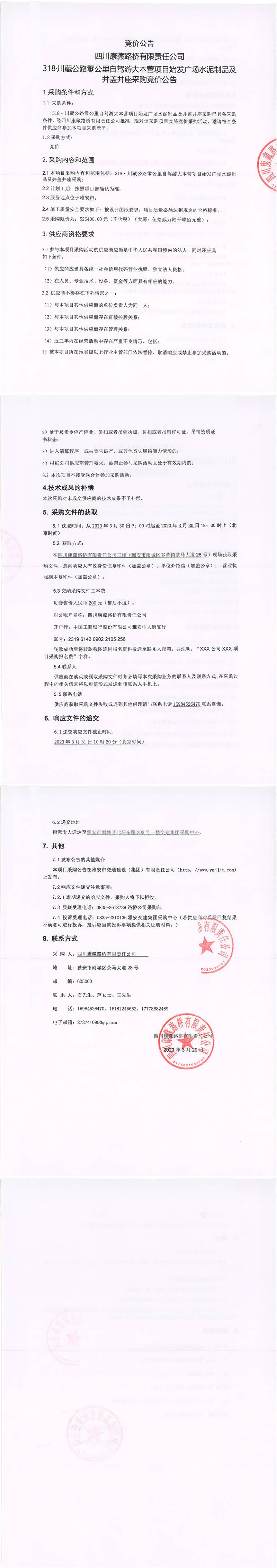 四川康藏路橋有限責(zé)任公司318·川藏公路零公里自駕游大本營項(xiàng)目始發(fā)廣場(chǎng)水泥制品及井蓋井座采購競價(jià)公告