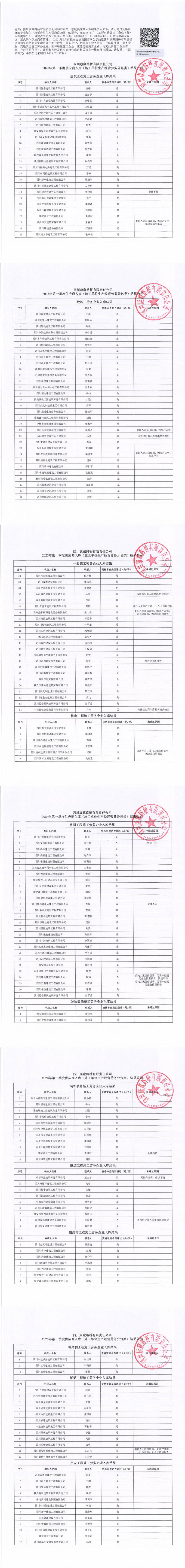 四川康藏路橋有限責(zé)任公司2023年第一季度供應(yīng)商入庫(kù)(施工單位生產(chǎn)經(jīng)營(yíng)勞務(wù)分包類)結(jié)果公示