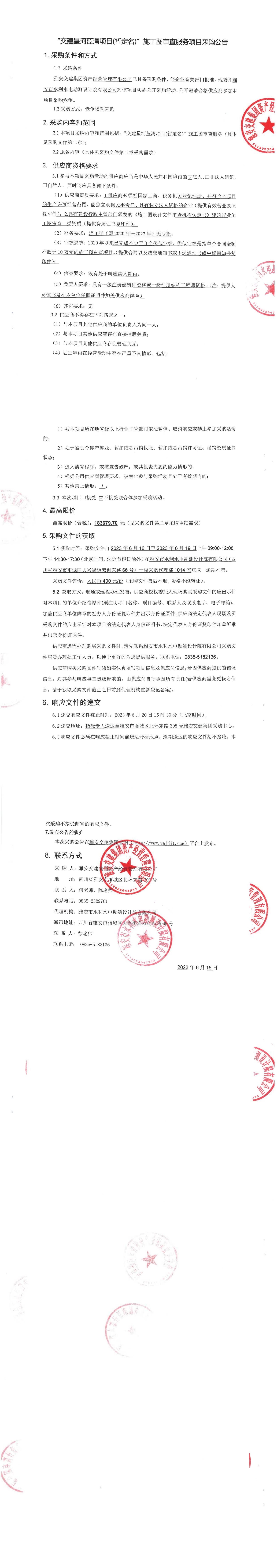 雅安交建集團資產(chǎn)經(jīng)營管理有限公司“交建星河藍灣項目(暫定名)”施工圖審查服務(wù)項目采購公告