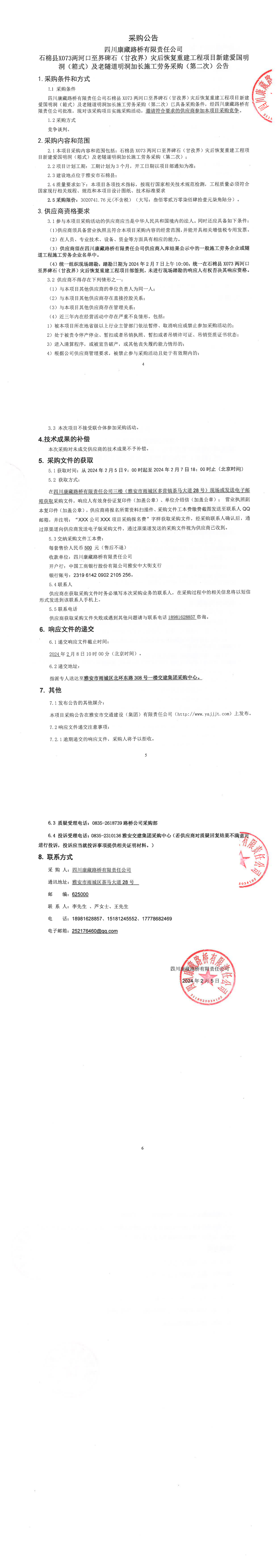 四川康藏路橋有限責(zé)任公司石棉縣X073兩河口至界碑石(甘孜界)災(zāi)后恢復(fù)重建工程項目新建愛國明洞(箱式)及老隧道明洞加長施工勞務(wù)采購(第二次)公告