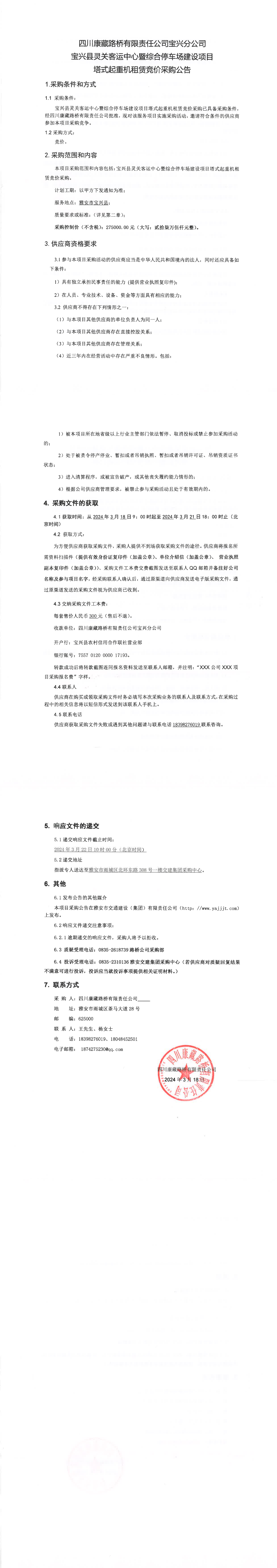 四川康藏路橋有限責(zé)任公司寶興縣靈關(guān)客運(yùn)中心暨綜合停車場建設(shè)項(xiàng)目塔式起重機(jī)租賃競價(jià)采購公告