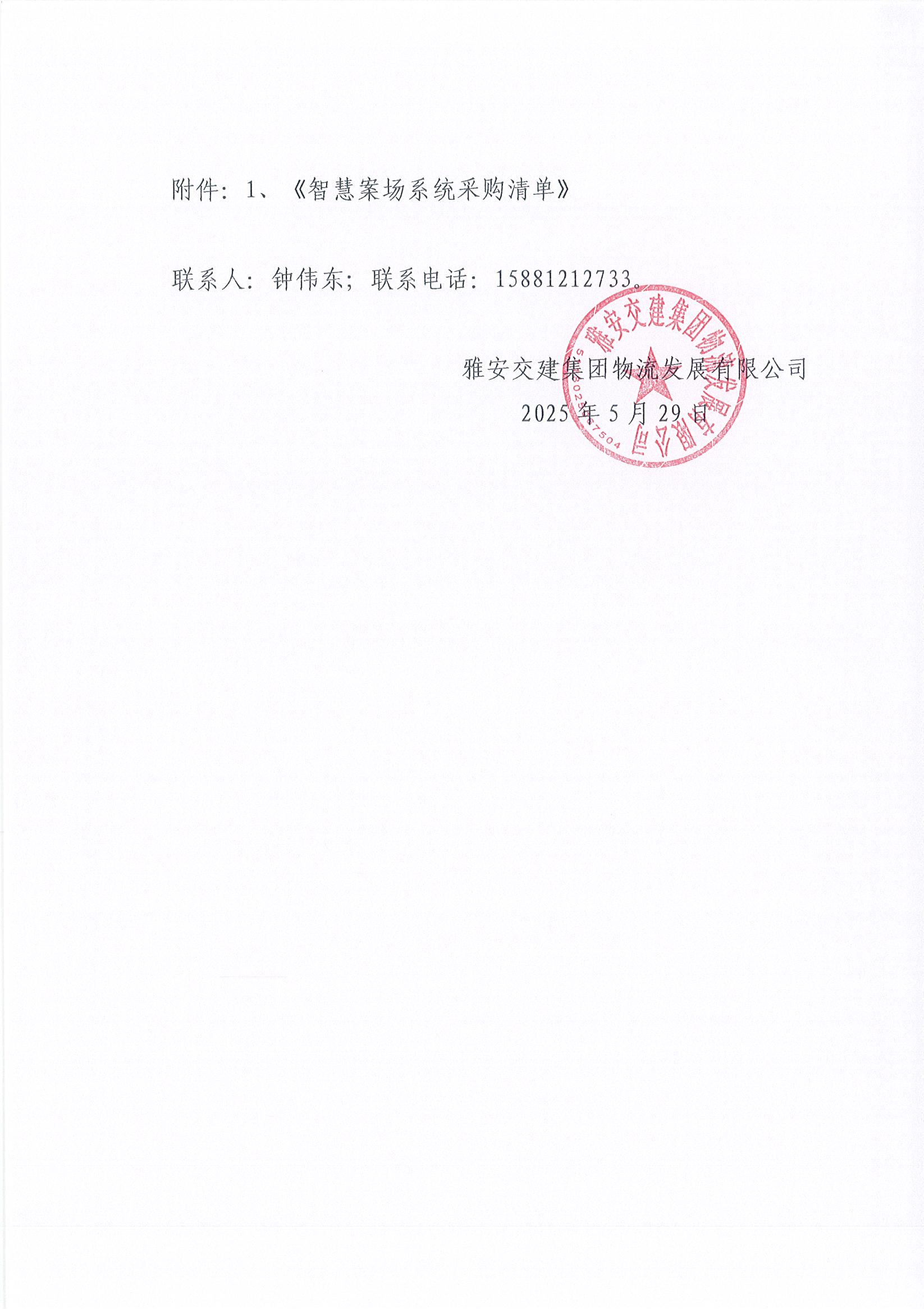 雅安交建集團(tuán)物流發(fā)展有限公司智慧案場系統(tǒng)采購市場調(diào)查詢價函