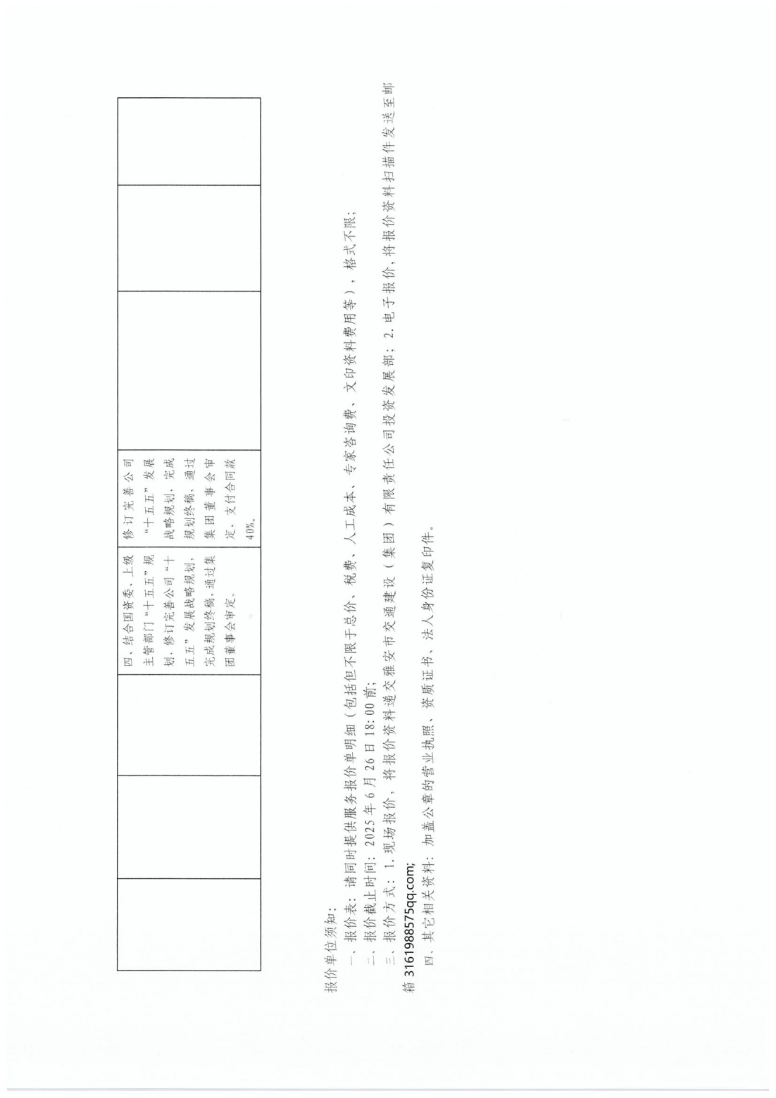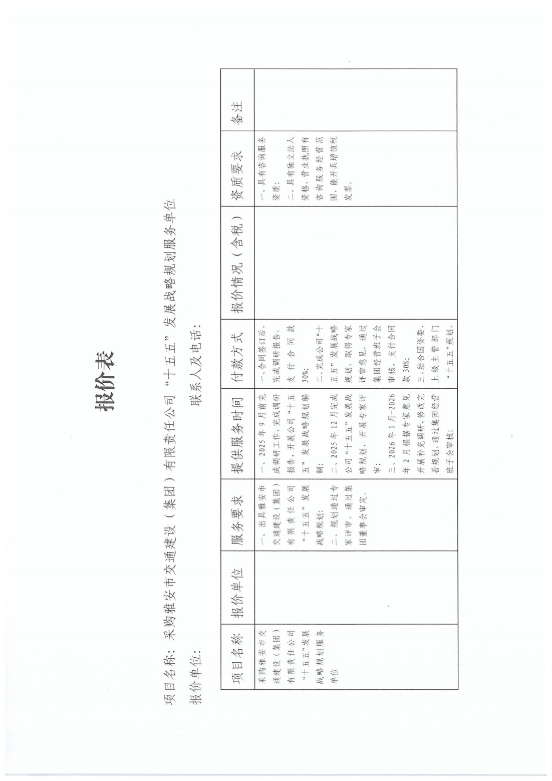 關(guān)于采購雅安市交通建設(shè)(集團)有限責(zé)任公司“十五五”發(fā)展戰(zhàn)略規(guī)劃服務(wù)單位的詢價