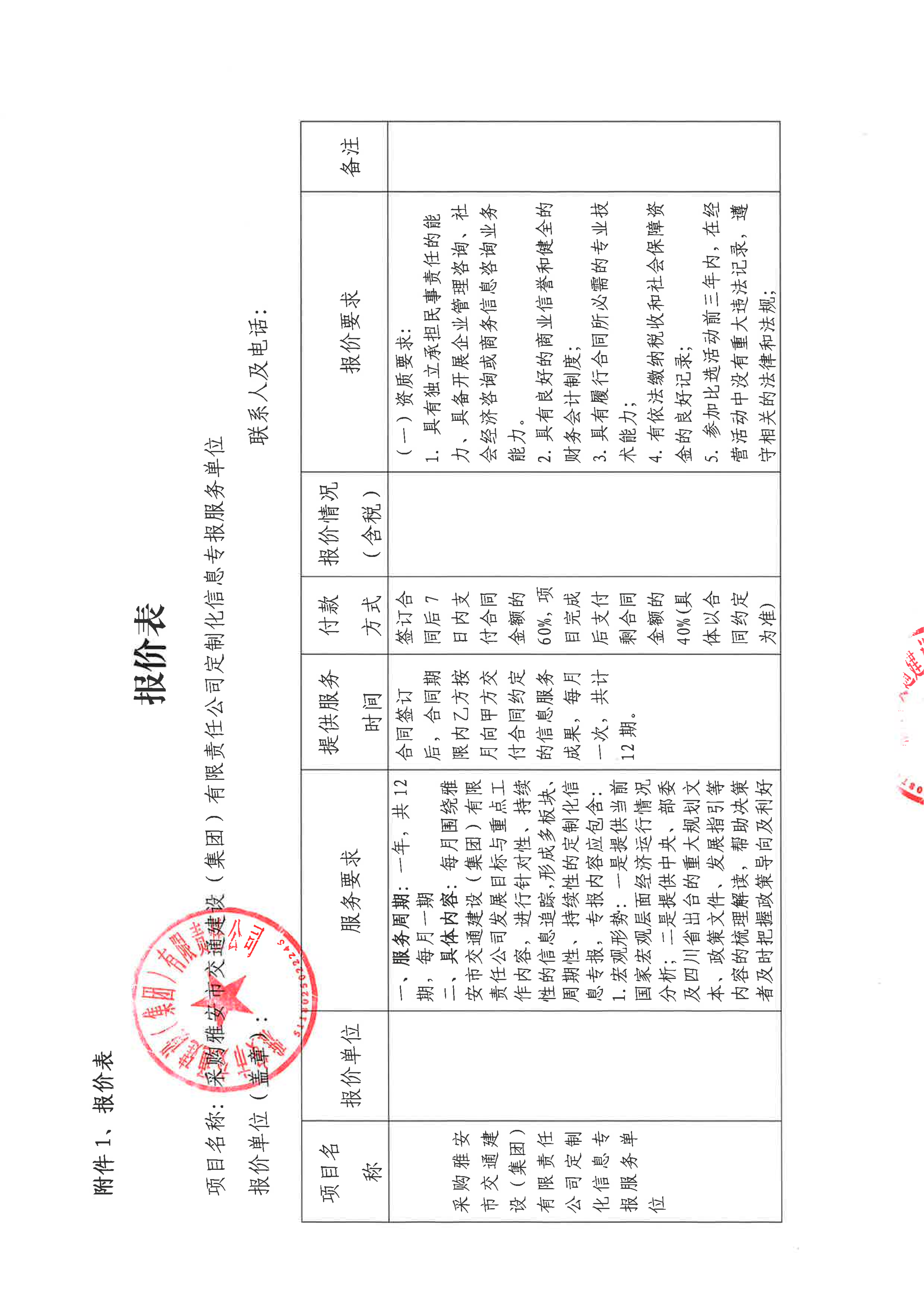關于雅安市交通建設(集團)有限責任公司定制化信息專報服務采購限價的詢價函