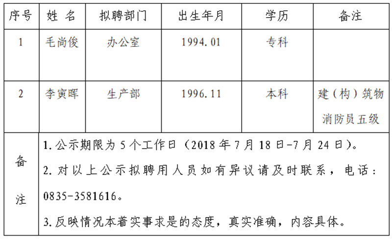 名擬聘用人員,現(xiàn)公示名單如下: