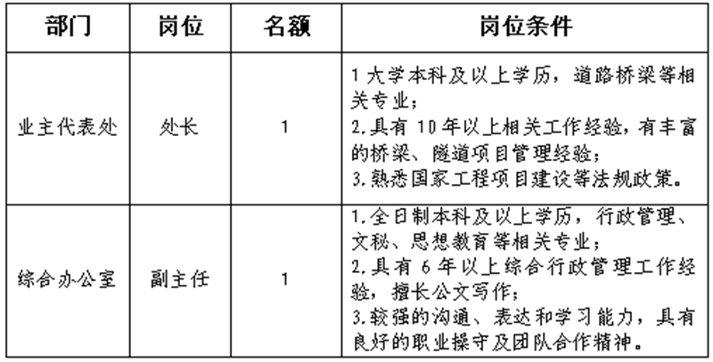 根據(jù)發(fā)展需要,決定面向社會公開招聘雅安市交通建設(shè)(集團(tuán))有限責(zé)任公司(以下簡稱“雅安交建集團(tuán)”)所屬子公司相關(guān)人員2名,現(xiàn)將有關(guān)事項公告如下: