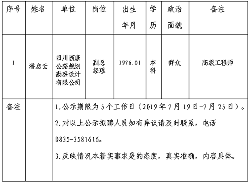 雅安交建集團子公司擬聘用人員公示 (勘察設計公司)