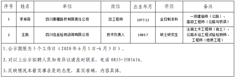 四川康藏路橋有限責任公司擬聘用人員公示(人才引進)