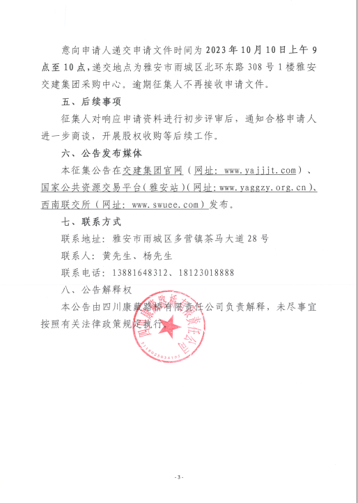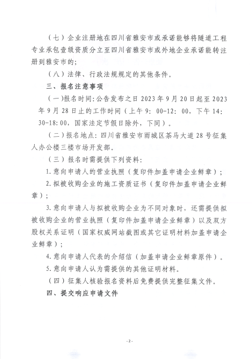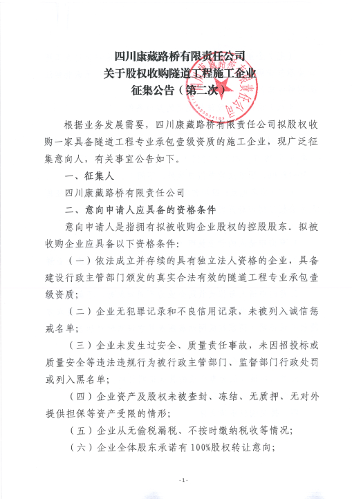 四川康藏路橋有限責任公司關(guān)于股權(quán)收購隧道工程施工企業(yè)征集公告(第二次)