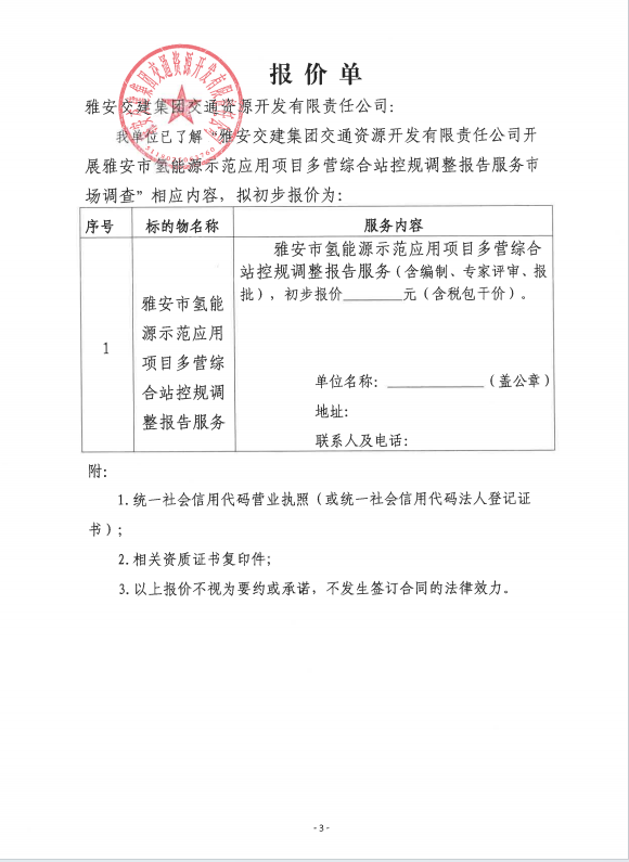 雅安交建集團交通資源開發(fā)有限責任公司雅安市氫能源示范應用項目多營綜合站控規(guī)調(diào)整報告服務市場調(diào)查公告