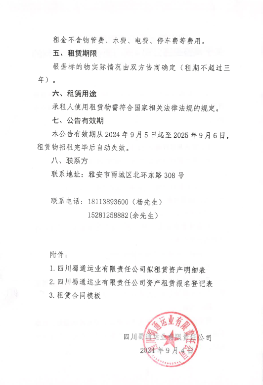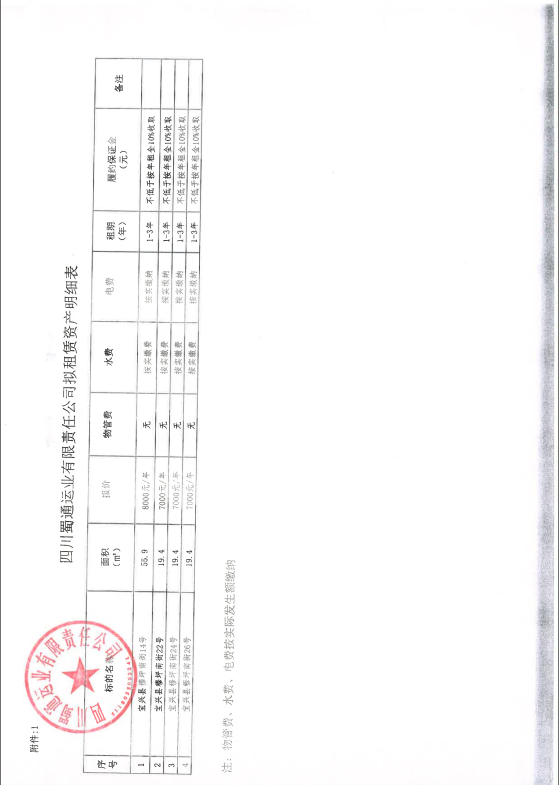 四川蜀通運業(yè)有限責(zé)任公司關(guān)于調(diào)整蜀通公司4間門面價格二次掛網(wǎng)的公告附件