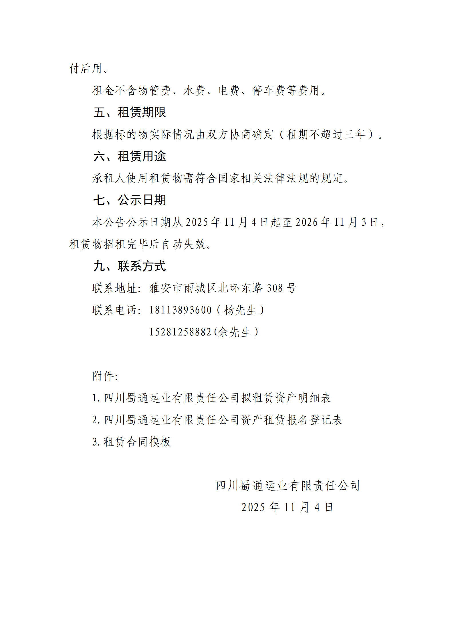四川蜀通運業(yè)有限責任公司 關(guān)于蜀通公司部分閑置場地進行掛網(wǎng)招租的公告