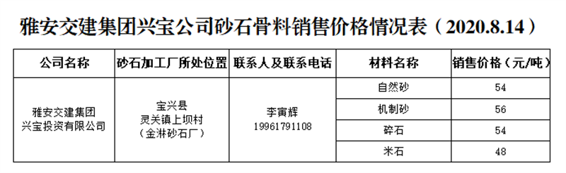 ÑŰ²½»½¨¼¯ˆFÅdŒš¹«Ë¾É°Ê¯¹ÇÁÏäNÊÛƒr¸ñÇé›r±í£¨2020.8.14£©