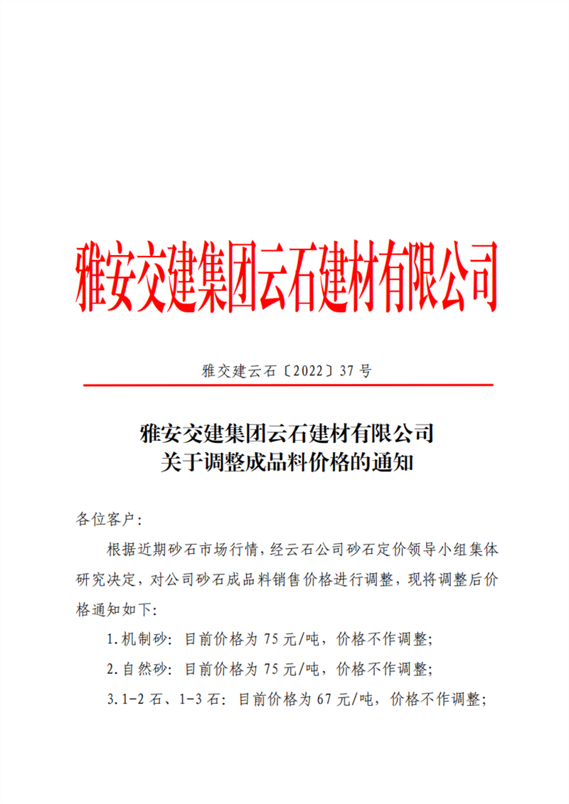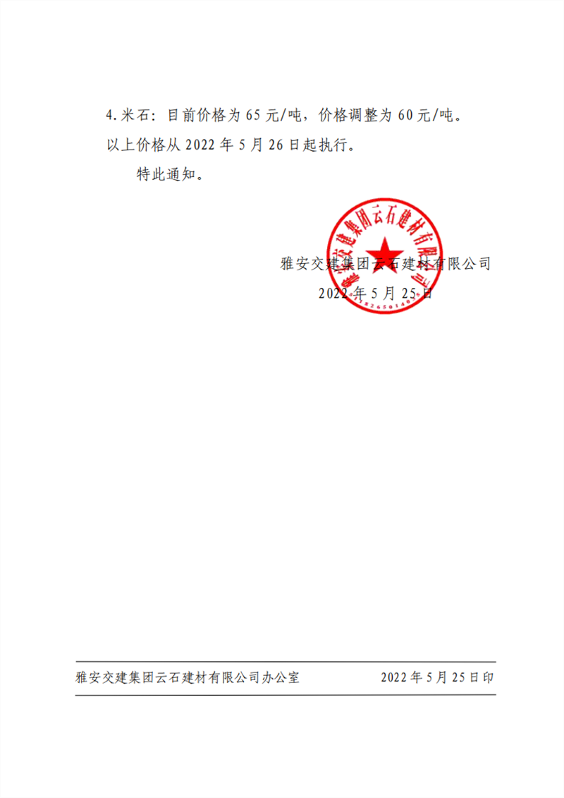ÑŰ²½»½¨¼¯ˆFÔÆÊ¯½¨²ÄÓÐÏÞ¹«Ë¾ êPÓÚÕ{Õû³ÉÆ·Áσr¸ñµÄ֪ͨ--2022-5-25